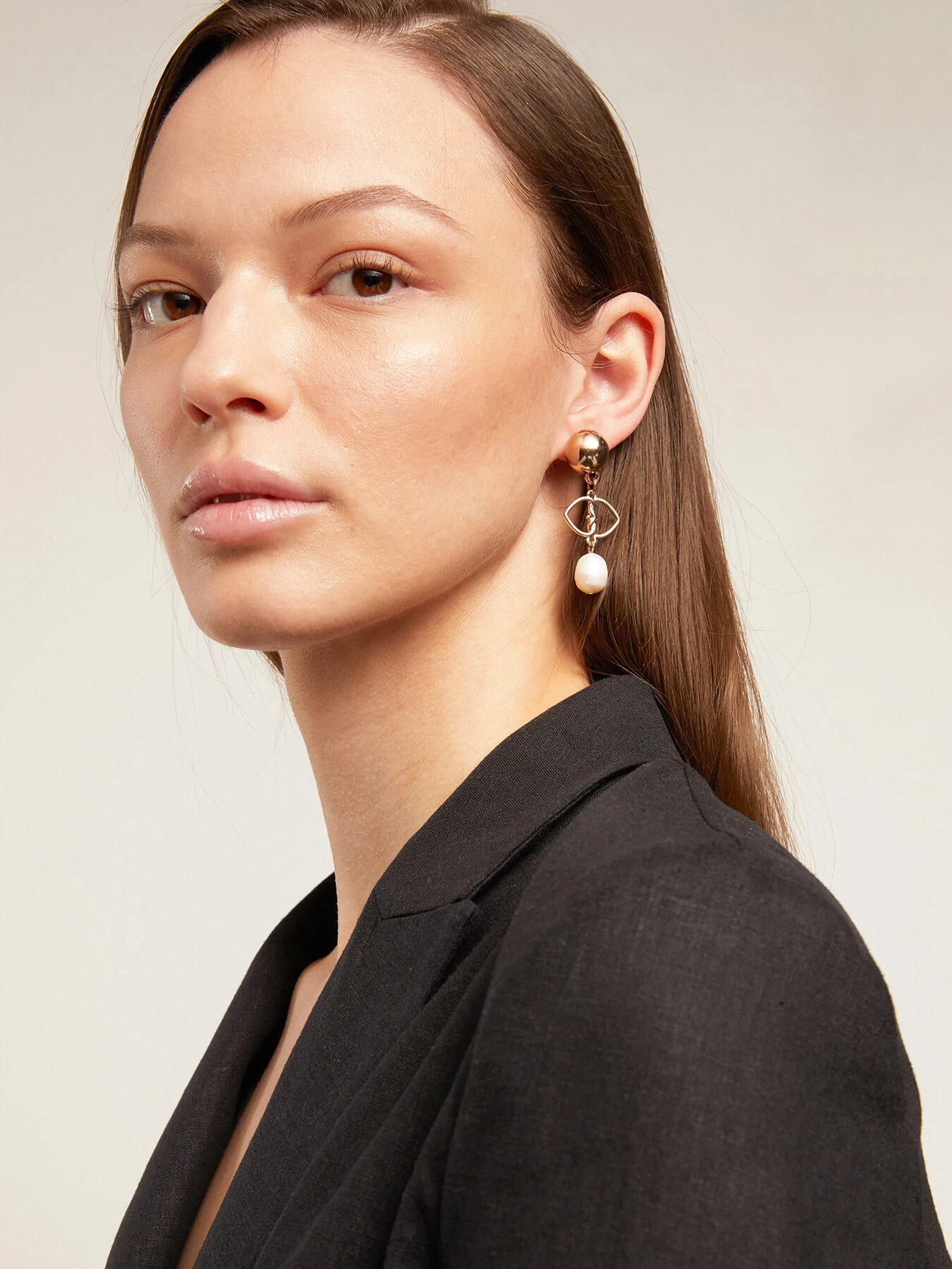 Orecchini Double Love con pendente a perla; chiusura a vite; tutti i bijoux della collezione sono nikel free.