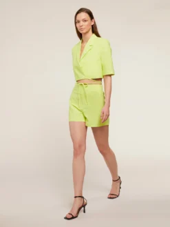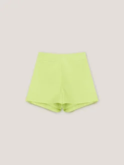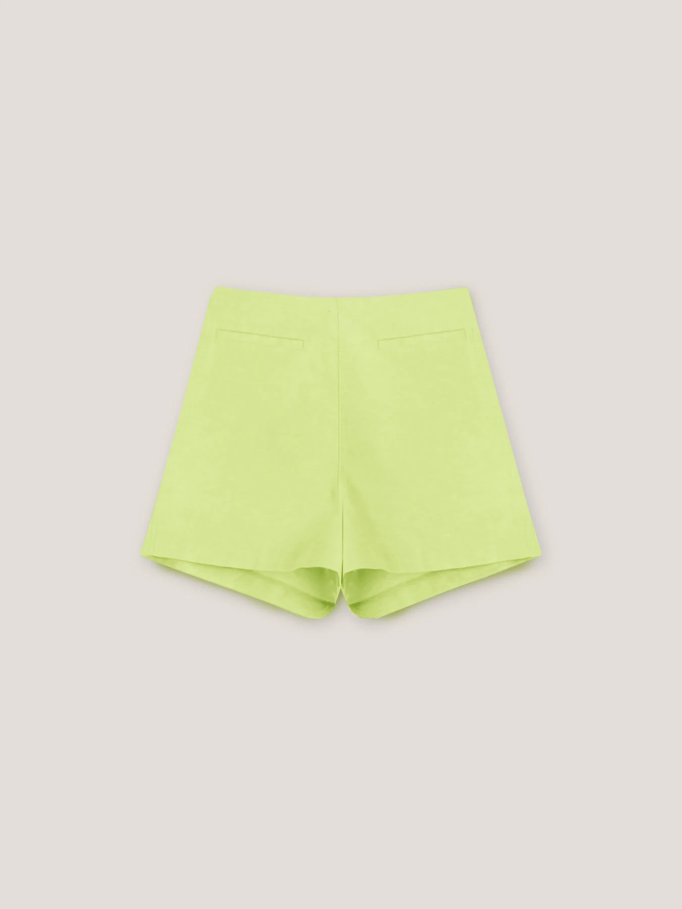 Shorts in tela di cotone misto lino; chiusura con zip sul fianco; tasche a filetto posteriori.