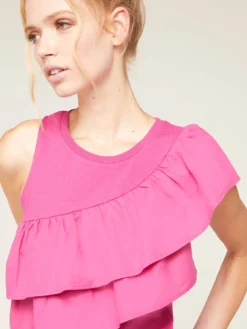 Top in jersey misto cotone tinta unita; modello con scollo tondo e spalla larga; motivo asimmetrico di rouches frontali in popeline misto cotone lyocell.; Scegliendo i nostri prodotti in cotone state supportando il nostro contributo alla missione di Better Cotton promuovendo una produzione più responsabile del cotone. Questo prodotto proviene da un sistema di bilancio di massa e pertanto potrebbe non contenere Better Cotton.
